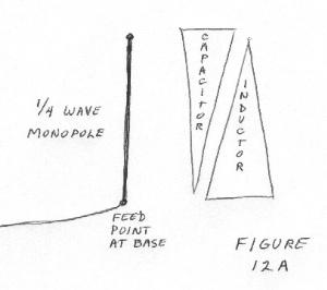 The circuit from the RF output point ( the switch ) to the antenna is considered the RF circuit. The RF energy travels only in this area. It hopefully goes to the antenna and exits. The other things it could do is to get dissipated as heat or reflected back to the source causing a greater SWR that the minimal 1:1 ideal ratio. The RF energy goes toward lower impedances directions. A signal traveling in a 50 ohm circuit will go to a 48 ohm circuit easily. The final impedance is the antenna. The antenna is both a inductor and a capacitor. See figure 12b. Its exact shape and size control many adjustable options in its design. Just about anything will work one way or another.